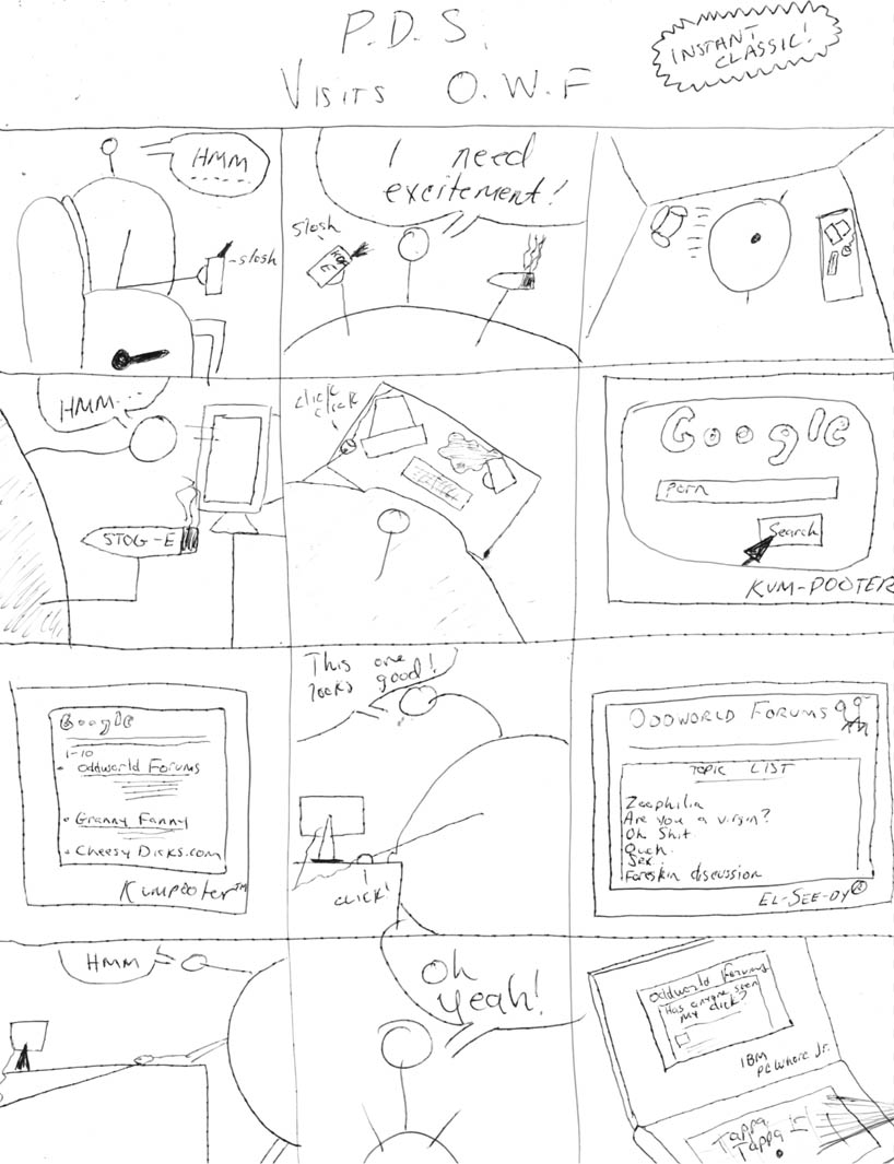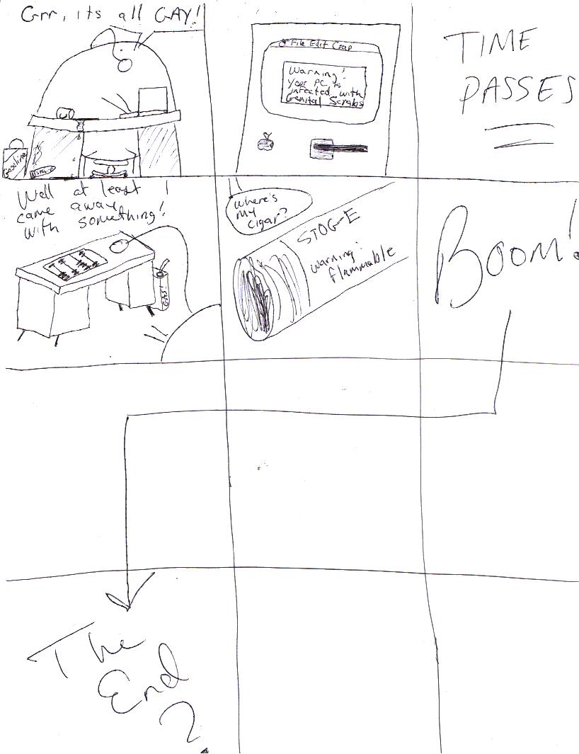 This is really what boredom will do to a man, I used to draw these "PDS" comics on the crowded bus on the way to school to kill the time. The main character, PDS, stands for Paul De'Shmall which was a parody of a bully of mine named Paul. Writing comics about his inane misadventures not only killed time but also helped me laugh at the guy.