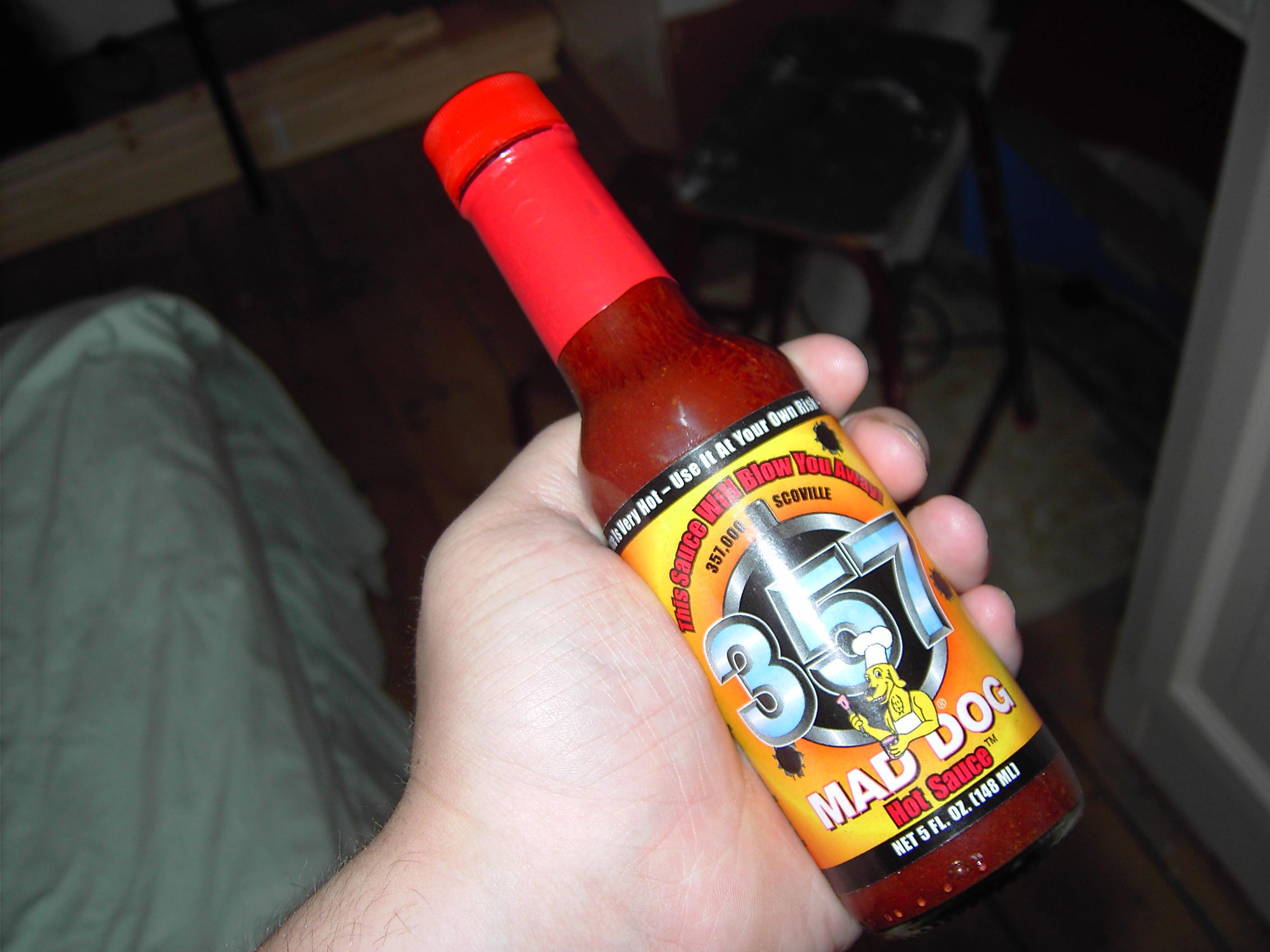Now, i adore spicy food so i like a reckless idiot buy the hottest sauce i can find, which they rate as being "Heat level 10+++". It is indeed the hottest sauce in the shop. I get home and am eager to try the thing which has deafeted many because of it's unbearable heat ... i take off the lid and sniff the sauce, it gives off a heavy scent of spices and i think it's going to be alright, so i dab my finger on the inside of the lid and place the TINYEST amount of the sauce on my tounge. Immidiately, i gasp in pain and almost throw up. It took me fifteen minutes to get rid of the horrible pain in my mouth from the shear spicyness of that sauce, i can't even begin to describe how hot that sauce is. That wans't even edible, it just caused AGONY. That'll teach me to explore... |