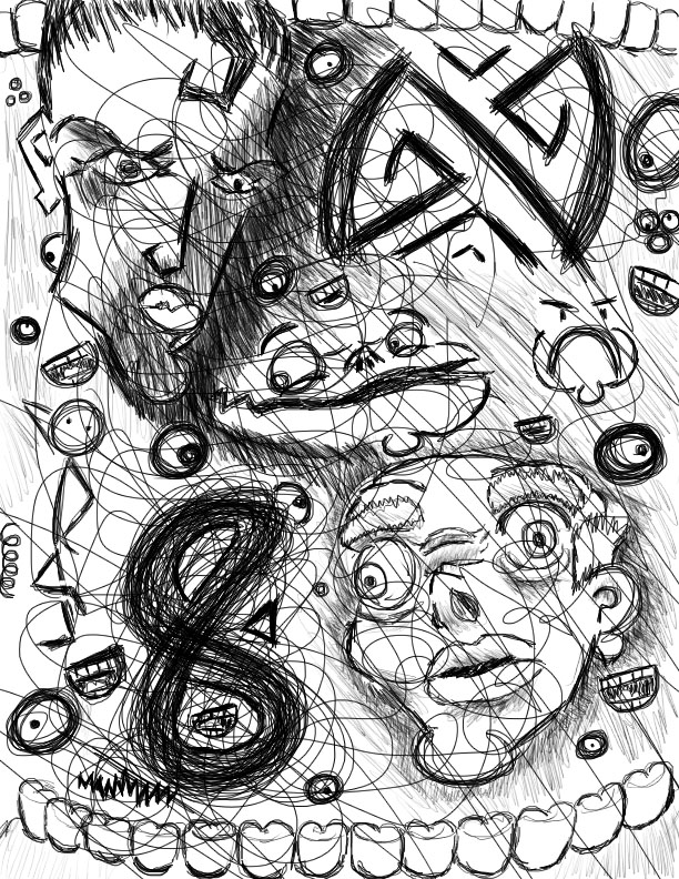 3rd Rock from the Sun is a hilarious show. I could tell you which parts of the pic were which episodes, stretched out into multiple lines of digital ink. Like how the shading is the episode where John Lithgow wanted Joseph Gordon-Levitt to go to a fancy shmancy smart people school to make him seem like a smart dad. I should take up drugs or something... |