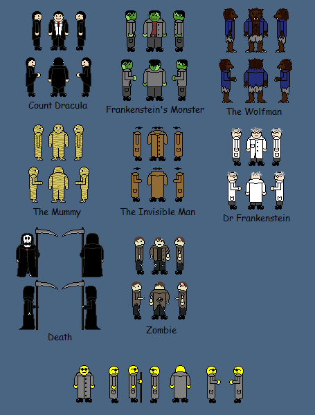 New Classic Horror (potential webcomic by me?)The other day I got the urge to randomly begin drawing classic figures from horror fiction and film in the style of my comics for Mod Survivor Island.