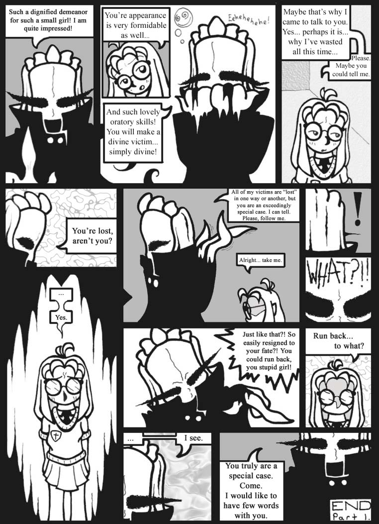You might find it a wee bit hard to read. It goes "top panels --> both bottom left-hand panels ---> both rows of bottom right-hand panels." If you haven't noticed already, this isn't as light-hearted as my last "No Resistance" thing, hence the boring text. It's my comic I can do it any way I want to. Shut up.