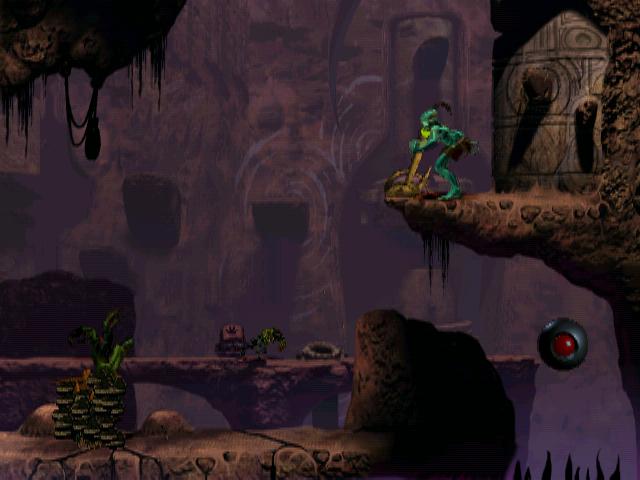 If I understand the place you are talking about, you have to use the switch to squash the slig who's closest without getting shot by the one in the background. See the picture attached. After you've killed the close slig, you just have to run past while the slig in the background and possess the slig on the next screen. You then have to activate the flint lock with the switch, which will set a bunch of slogs on you from the kennel, so you'll need to be ready to shoot. Once you've finished with them, take the slig to the right and quickly shoot the other slig. That's pretty much it, the rest is easy.