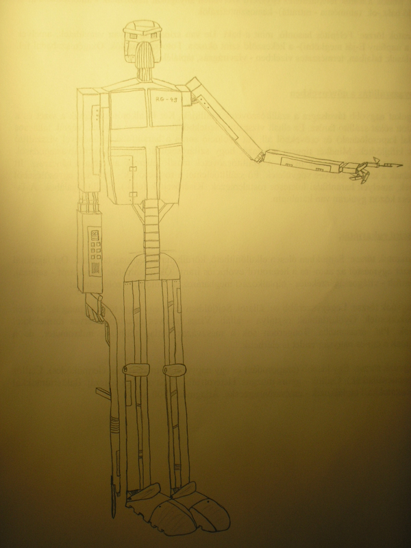 Nothing for the comic now, only a quick-concept drawing of RG-49. The head may change until I form the comic-version, there's not much detail on him.