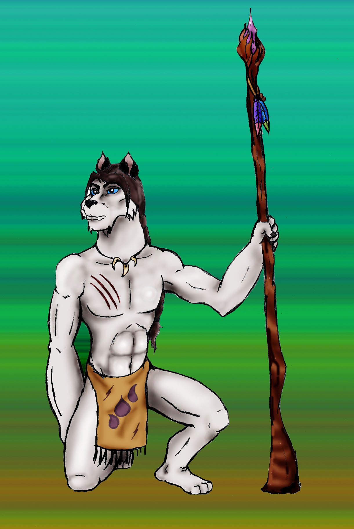 Here's the finished version of Acroney the Toicer. The Staf is jus' a gift from other distinguished Toicers and show how high status ya have.