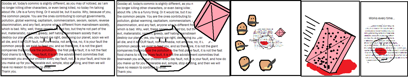 Well here's my new one, still a bit confusing, but a death nevertheless, and to the foes that Spud could never defeat before.