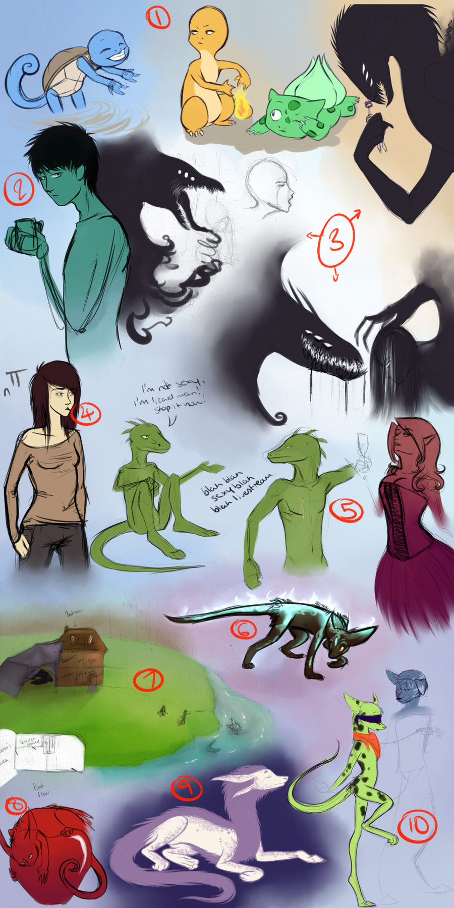 - I finished a sketch from September '10 of Zoe and her intern buddy Nye. I also did a character development of the time and when I first created her. I sucked. She's also had a little bit of a style change. I've put much more effort into her race and their anatomy and ways of life.