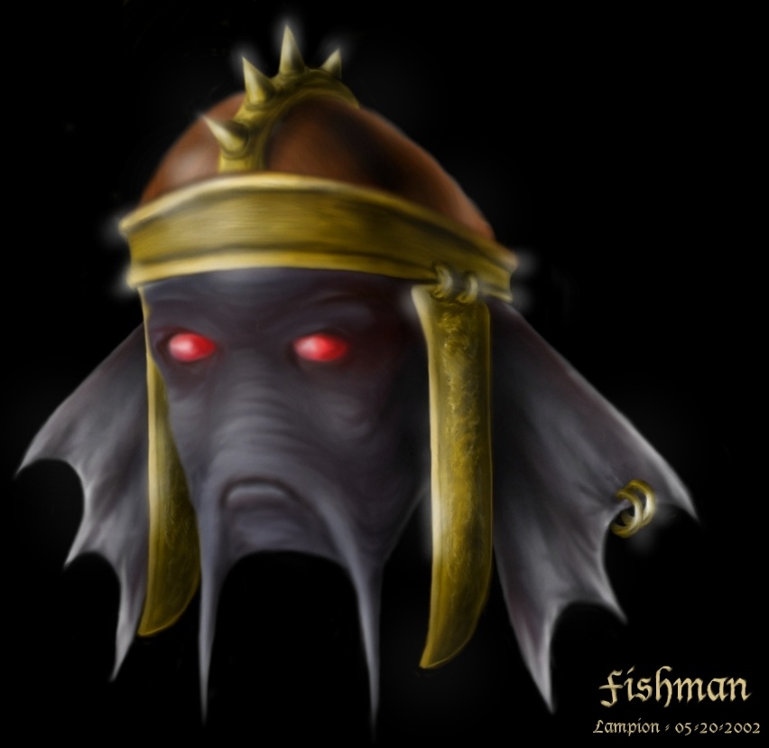 Mudokon101, I lke to make sketches with pens and scan them to continue the work in the computer, but in this case I made both pictures completely with the mouse and the software I mentioned. When I started the first one I didn't have a fishman in mind. I started with a basic shape, intending to make a man's face. I was having probles making his nose, so I ripped it off. I started to mix colors and got the grey tone of his skin. So, the idea of making a gishman came to me. I added the big ears, and the Greek-like elm. The ear-rings seemed to be a nice touch. It added character to the warrior.