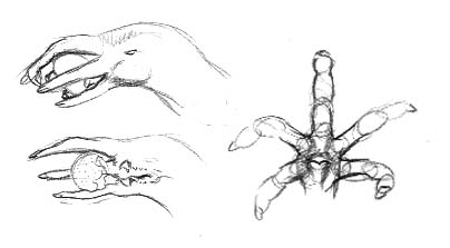 Thats a pretty good drawing Kleeng, as for the Sligs tentacles. Yeah, I would guess that thier pretty versital, thats what helps them talk Im guessing. Because whenever I see a Slig talking its tentacles raise and contract. Just a thought.