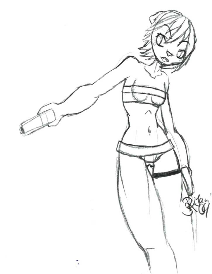 Yameela. My character. I hate this one. i really hate it. Especially her lips, arms, legs, her clothes and her "pistol". I tried to make her look dangerous. Nice idea.