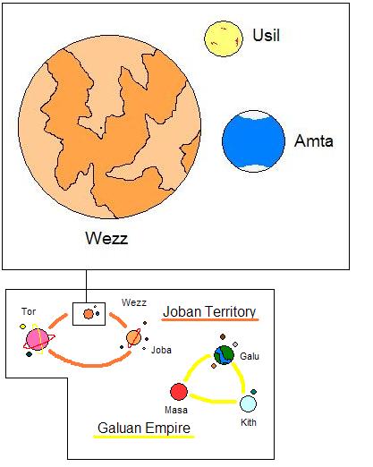 The Galuans attacked the Jobans on Wezz. The war raged for 400 years. Many of the human and Lizard guys cities were destroyed. The war continued until all the ore on Wezz had been mined. The Jobans defeated the Galuans and Wezz became part of their territory.