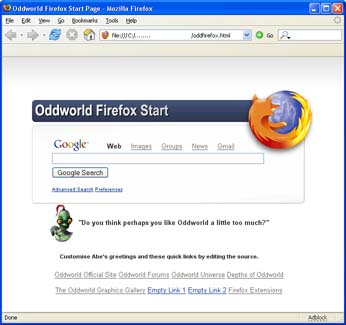 For reasons known only to myself, I have a modified version of this page with the Official Oddworld-Firefox logo, the same google form and an Abe head that greets you with a different random greeting each time. Also there are quick links at the bottom.