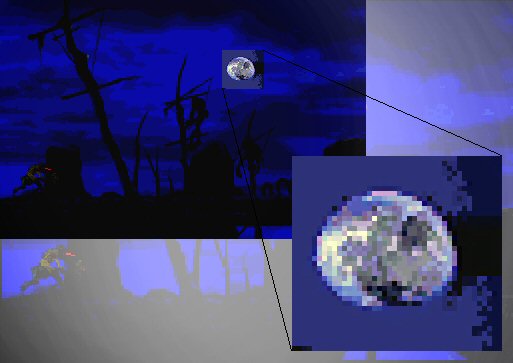 look at the moon in the attached image. I know it's not really clear, but if you feel the urge to investigate, you can always pop in Abe's Oddysee.