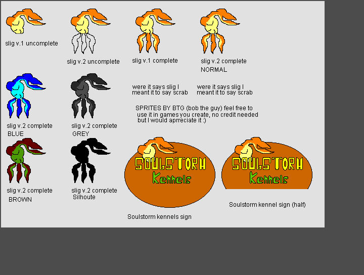 by the way everyone It only took around 15 minutes to make those sprites so I'll probably have some walking/ground sligs up on here soon.