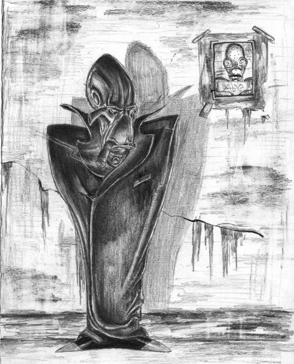 I've been meaning to get this picture up after finishing it last summer. It's nothing special, just a copy of Mullock from 'The Art of Oddworld' book. Obviously it was done using pencil, and it took me about 2 days, mainly because i would get bored sitting and drawing for ages so i split it up.