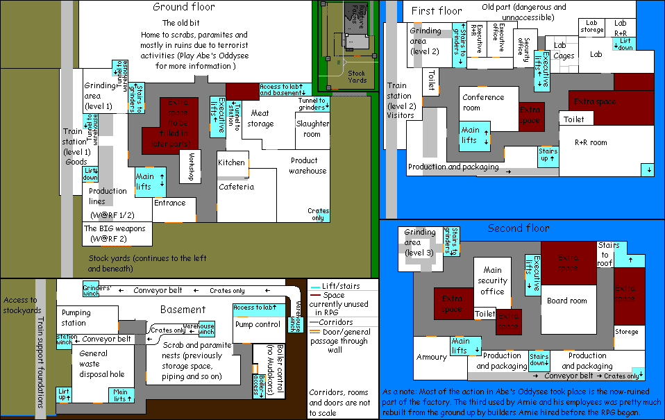 The old Rupture Farms was reopened by a Glukkon named Arnie, and employed everyone who wanted to work in the factory. Gaining profit was always the main goal, but life is not just about working... well, at least when you're sleeping in R+R. Arnie has decided to treat his mudokons nicely, hoping this wil keep the terrorists away.