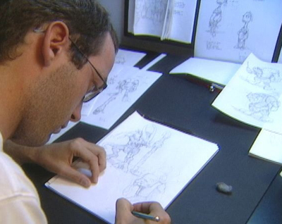 I actually did see this in the video, but it was only the last time I played through it (on Sunday I believe) that I noticed the thing Raymond Swanland was actually drawing. The camera just doesn't linger long enough to make out what it is, but whatever it is it's another humanoid creature.