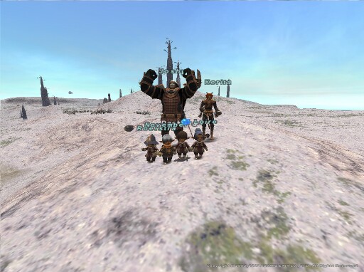 More pics! The big fat guys is Me!! The other person next to me is a human. I'm a Galkan, all the small little guys at front are tarus taru. I'm just waving my hands wen we tooks this picture^^