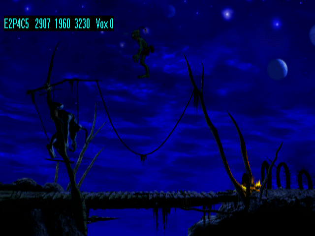 Screenshot from a secret passage in the 'Slog Goes Boom' area, a short distance before the 'Abe's Moon' cutscene.