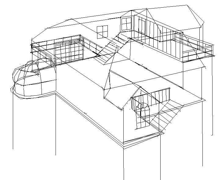 I live in a big house on the edge of town. It's victorian, detatched, four storeys including the attic. My bedroom is the attic, which is quite a modern, minimalist space but still interesting. It has one main level with doors onto the flat part of the roof, that functions kinda like a balcony, and a set of stairs within my room to the observation platform, which is just another bit of higher up part of flat roof that you can walk out on to. Above everything is the flat roof, which has a ladder outside that you can climb up to get onto it - but there's so little point in going up there unless you're pissed off and want to escape. I've slept up there in my tent a few times. My room has an en suite which is next to the stairs down, and next door to that is the observatory, which is just basically a glass dome that was used as an observatory by the first owners of the house in victorian times. The other side of the en suite is the staircase down to my own personal lounge space, which has game systems, flatscreen TV, various forms of fancy ambient lighting, a comfy sofa, DVD player, sound system, drinks cooler, and a nice big skylight and window directly underneath that which reaches down to the floor level, which I quite like cause it looks funky - it's generally just an area for me and my friends to chill out the way of my bedroom.