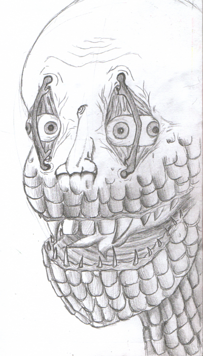 Very good drawings! I like the style you have. And ya, some of it is pretty creepy like the thing with the guy's eye sockets spread open and stuff.....