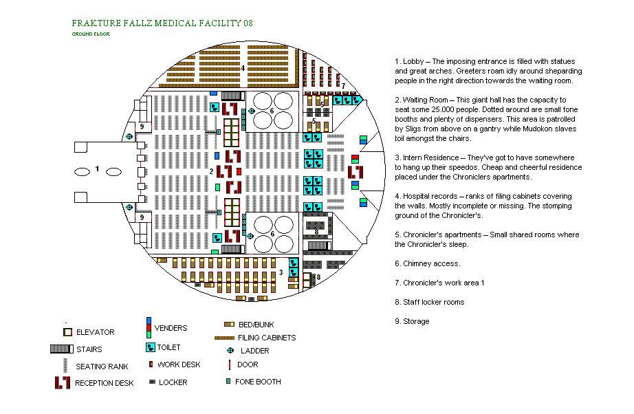 Attached is the map of the ground floor of the central tower, more maps coming soon/ on demand. The green picture is the Frakture Fallz insignia and the M in Manifen and is also the shape of Frakture Fallz.
