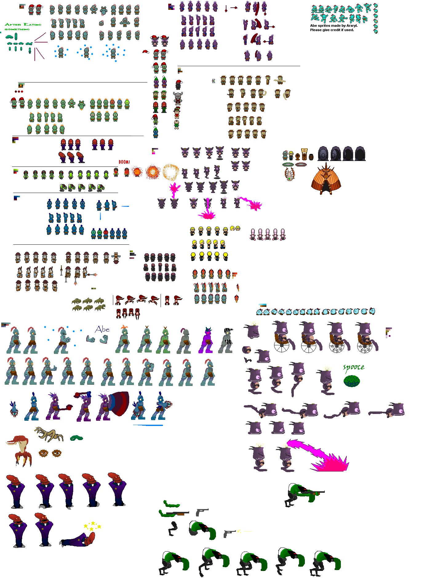 Okay scrabtrapman I have posted some sprites in my fan game thread called slig assasin fan game, feel free to use any of them, also if you want some more good sprites go to J_dude320's thread called oddworld fan game, and there should be a link in there that will lead you to one of Carnix's threads which has alot of sprites in it, I also think ARXYL made some good fleech sprites... forgot where they were located though.