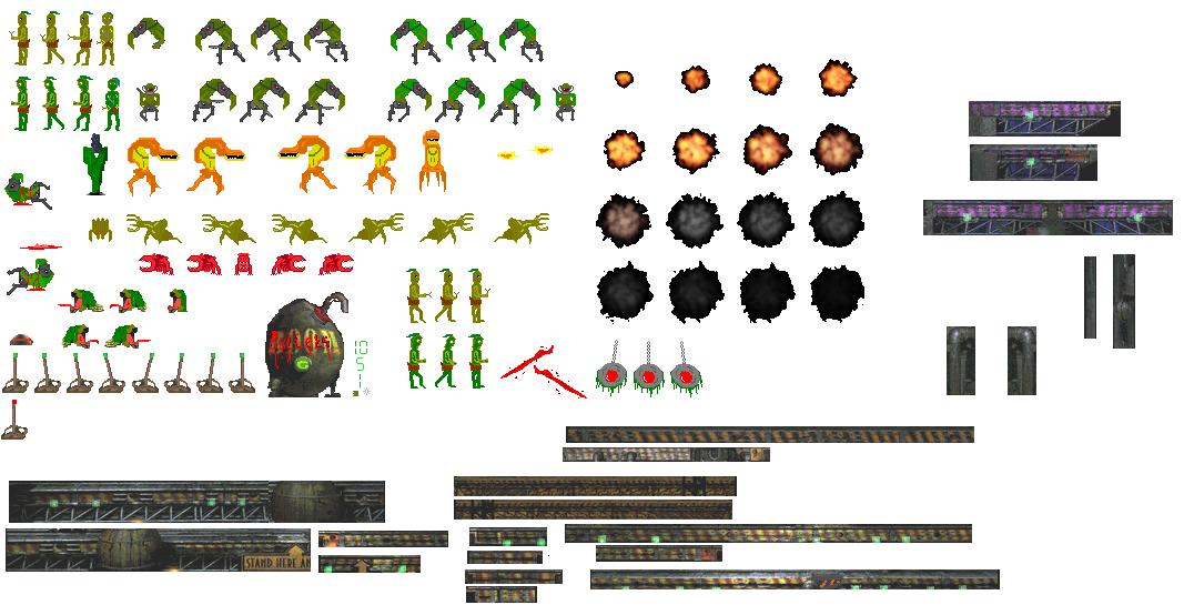 Slig Enemies,Slog Enemies,Many other Enemies and Glukkons as Bosses. When we get all The sprites i'l begin with The Rom Hack.