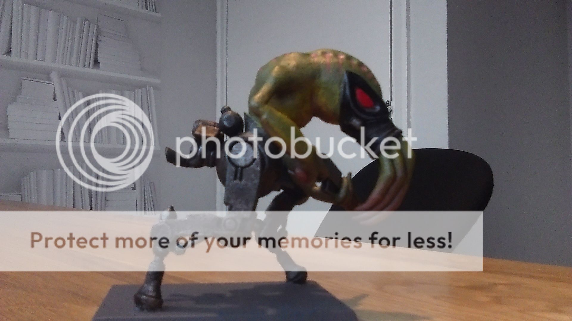 The Slig model was accurately traced from "The Art of Oddworld" Slig model shots. 3d printed, cleaned up and hand painted. This wasn't a home printed model but sent off.