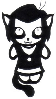 This is Aftiel, the Patron Angel of Twilight (mythologically accurate) and sister of Leliel (completely made up). I wanted Aftiel to look a little creepy, but cute at the same time... unlike Leliel, who was more creepy than cute (I drew her with stitched eyes, horns, and a little devil tail). I don't know. I guess she looks the way a spooky talking angel/doll would look; fecked up her tail and little stubby legs, though...