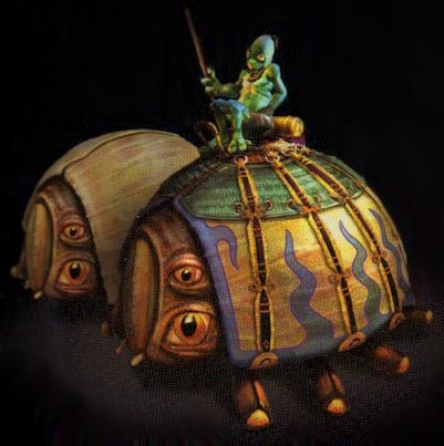 Meetles are peaceful and resemble the order of earth Insecta known as Coleoptera. The Mudokons have been known to use Meetles as air vehicles working in a similar fashion to hot air balloons; they have inflatable bodies. Meetles are often used as animals of combat that can be fitted with a variety of different contraptions, each serving a different purpose. Often they are used as terrestrial vehicles as well as being air-borne.