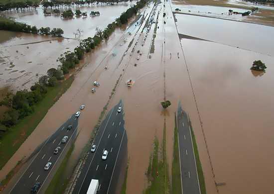 I personally was caught in the middle of one of the worst traffic jams in our history as a river overflowed a freeway. Only trucks and 4WDs were allowed through. Everyone else got turned back - only problem is that there was nowhere to turn to.