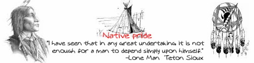 Hmmm...if anyone could make me a secondary sig (because nothing is replacing Godlesswanderer's) just for this month I would be happy. Godless, I know you have got some pretty good skills (not that any of you don't) and I have a sorta-challenge. Some people know that Febuary is black history month but what most people don't know is it is also Native American hertiage month. So if someone could get me a sig with a Native American on it, and some quote that says something that sound wise (If you can't find one on google I suppose you could make one up). Maybe have dreamcatcher to the right or the left side. For the background: a night sencery. Text in the center. The Native American at the other side (side the dreamcater isn't on).