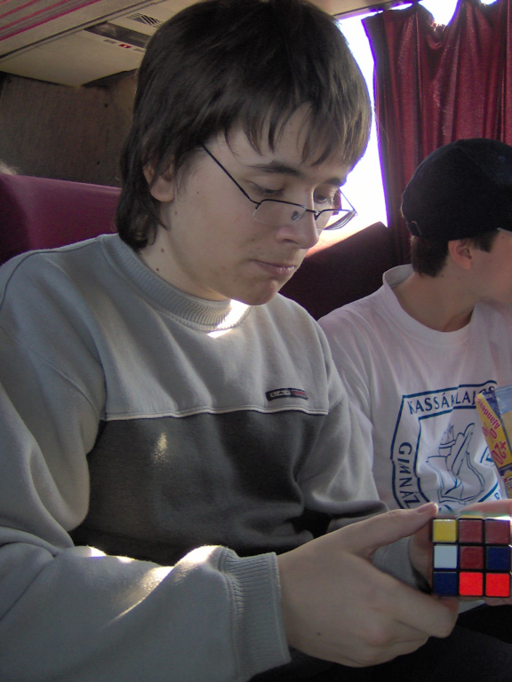 Found another pic from the trip. Sitting in the bus, trying to solve Rubik's Cube.