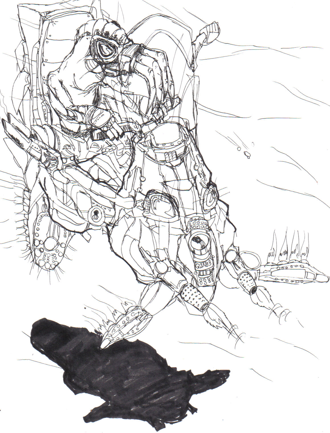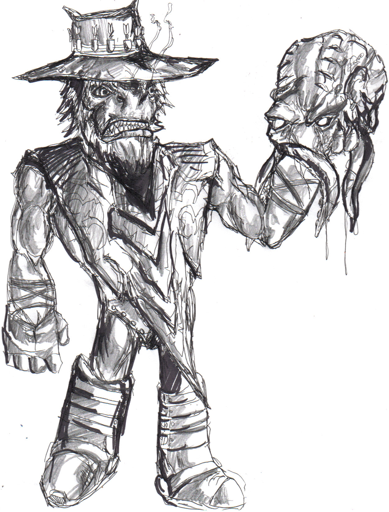This one I made of Stranger holding an Oktigi just to see what it would look like. I think it looks pretty good, but I did it quicker than the others and added shading. I think I need to practice drawing Stranger, because I made his legs a little too short, I think.