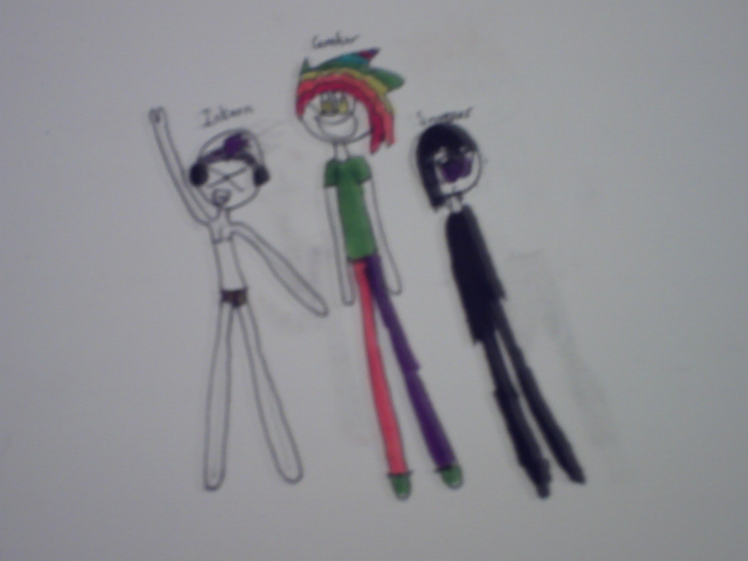I have a new pic. It involves A Human Intern, A Human Snoozer and a Human Greeter all standing togethor. Human Snoozer looks like a goth, Human Greeter looks mad and Human Intern would look almost normal if it wasn't for his purple and yellow striped underwear. Here you go.
