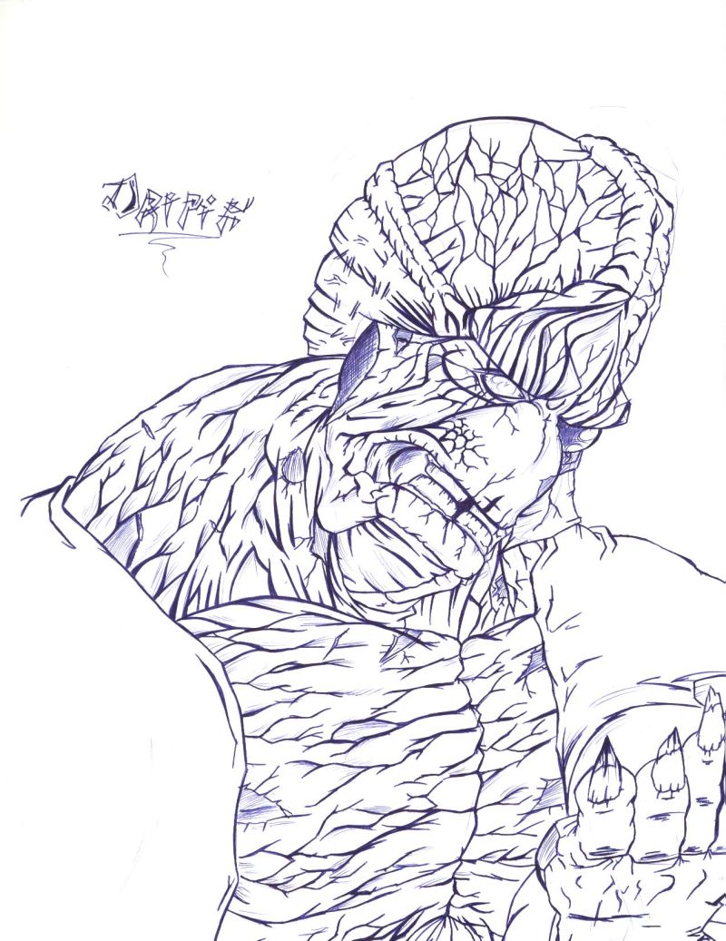 Dude... He looks freaky! His skin kinda reminds me of Freddy Krueger's burnt skin, but great job and detail there! Keep it up!