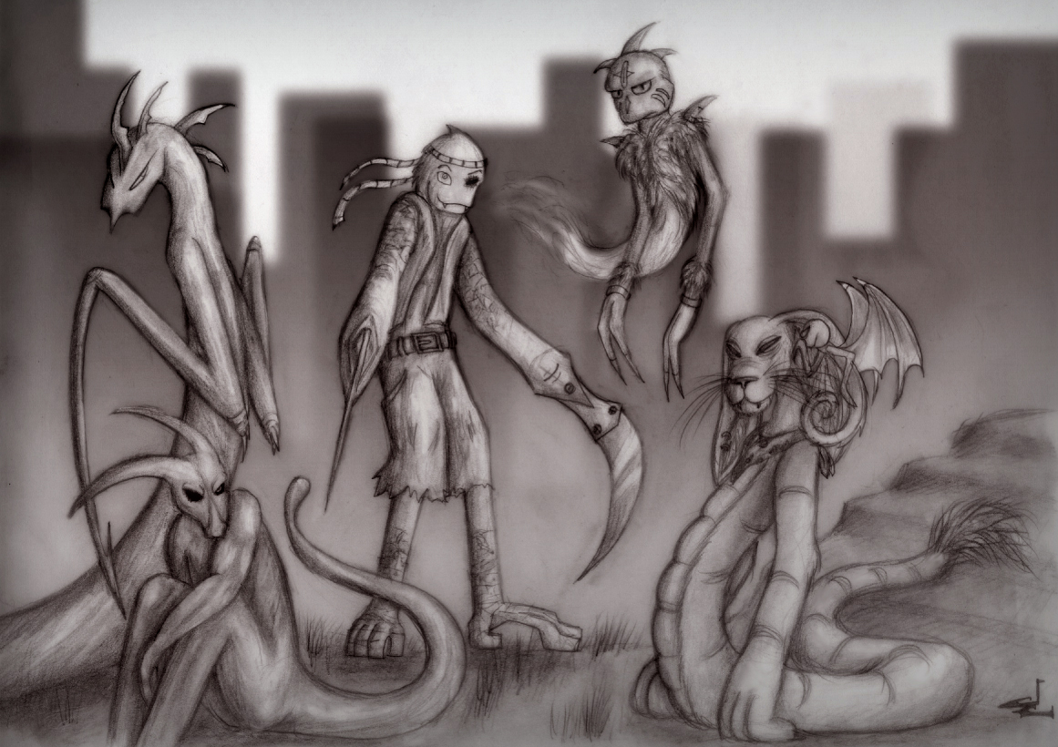 New picture! Scorpiontigers fightin'! (I called Adahy's species like that.)