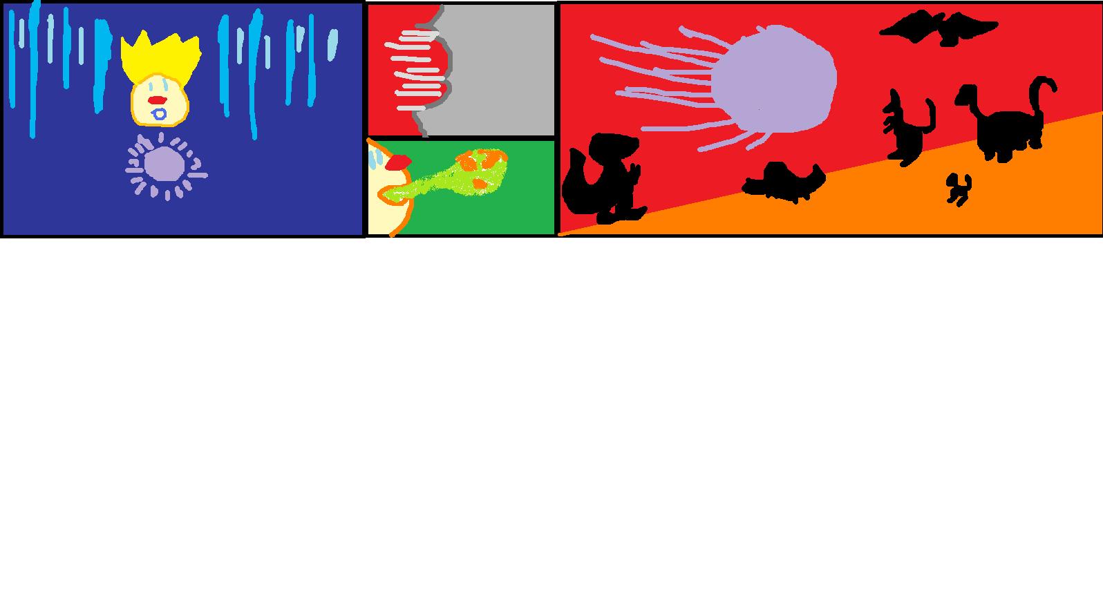Anyways, my paint is buggered, but what was meant to happen is that a portal would appear and a newspaper would come out, showing that presidant safe and been assisnated, knowing that it was his fault, and he only wanted to destry MacroD, is trys to find a way to save him, he finds Safe's ancestor, and grabs him, summons the stargate, and relying on it appearing, if it doesn't, he gives up and kills the ancestor, killing the whole line of safes, and if it does, he's teleported back to earth, and he replaces the ancestor with safe, saving his life, but in theory destroying it, a bystander starts pointing this out, but S.P.U.D. tells him to shut up