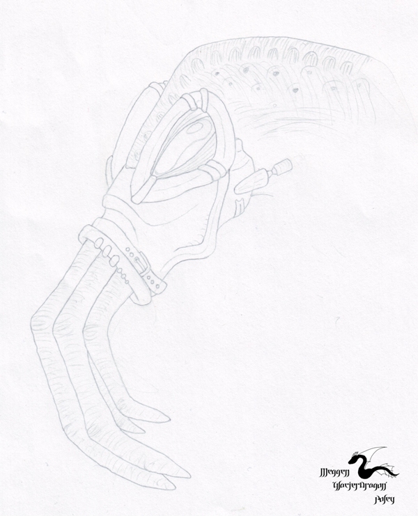This was a flippin' pain to do, especialy since I havn't used colouring pencils in years. And I had to layer the colours, which got me confused a couple of times. All in all I'm pleased with how it came out, though I think the neck's a bit fat. This has inspired me to start using pencils again. I might try to do a Vykker, Intern, or an Elum next in the same way.