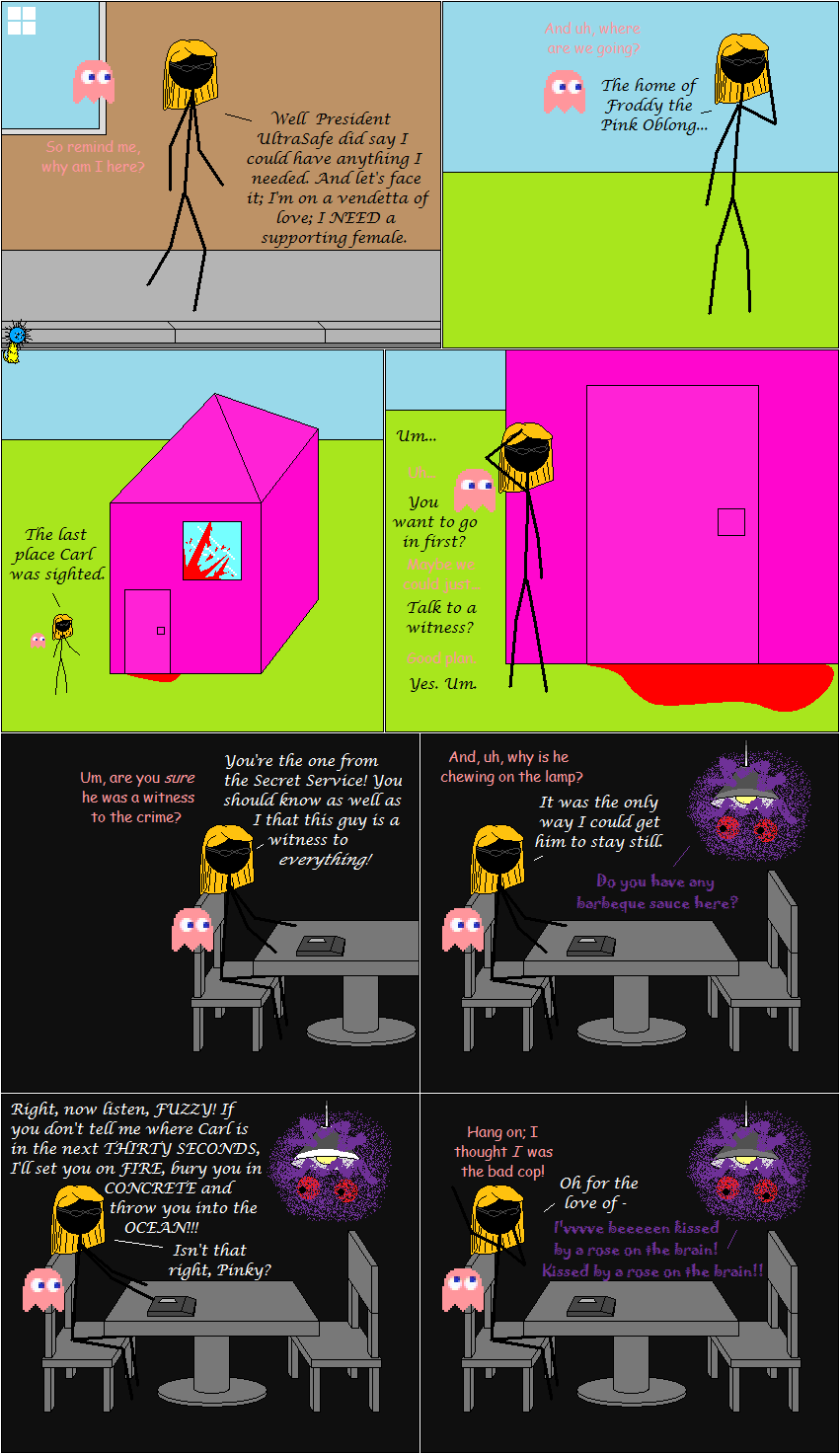 And I just thought you'd like to know that i'm not trying to make Carl a mary-sue or anything. Yes, he is invincible, and terrifying, and can shapeshift, and can appear at any given time (aka the purple mess' Coke can) but other than that he can't do much. Its supposed to be funny that somebody so plain can be so evil. xD