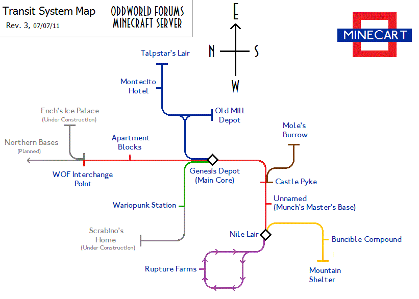 Maybe later we can get Havoc to post a map of the world to find out which areas haven't been explored yet and setup a new exploration base in the closest newly-generated chunk after 1.8, then build a railway out to it or something - Then people would have to be sure to re-set their spawn points and not remove beds. Until then it's probably best that people stop exploring the current map for new areas.