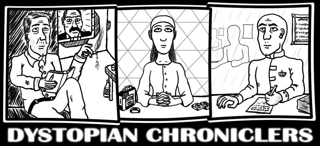 Turns out that I actually managed to come up with something that's related to the original main theme of this thread. To be honest, the idea itself is from about a year ago, when I was working on my thesis, and in a dull classroom moment I started doodling about the various dystopian novels which were the subject of my thesis paper.