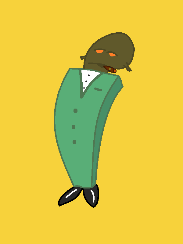 It's all here! The emotion, the unspoken suffering of the heart.... You can see the self-hatred in his eyes, and the cigar that symbolizes his self destructive means of dealing with his past. He wears a sharp suit, supported by small, false feet, and he is without arms, which symbolizes his helplessness for the life he just can't get a grip of despite his apparent professionalism! He is a glukkon, but his face resembles a mudokon, which symbolizes how in reality we are all the same on the inside, but on the outside, we wear these suits and we put on these masks to disguise ourselves and appear ready for another day of work. All the while, we are fighting invisible battles that no one else can see! Sometimes, even waking up is an act of bravery in this world... This world, this world of scrab cakes and slavery.