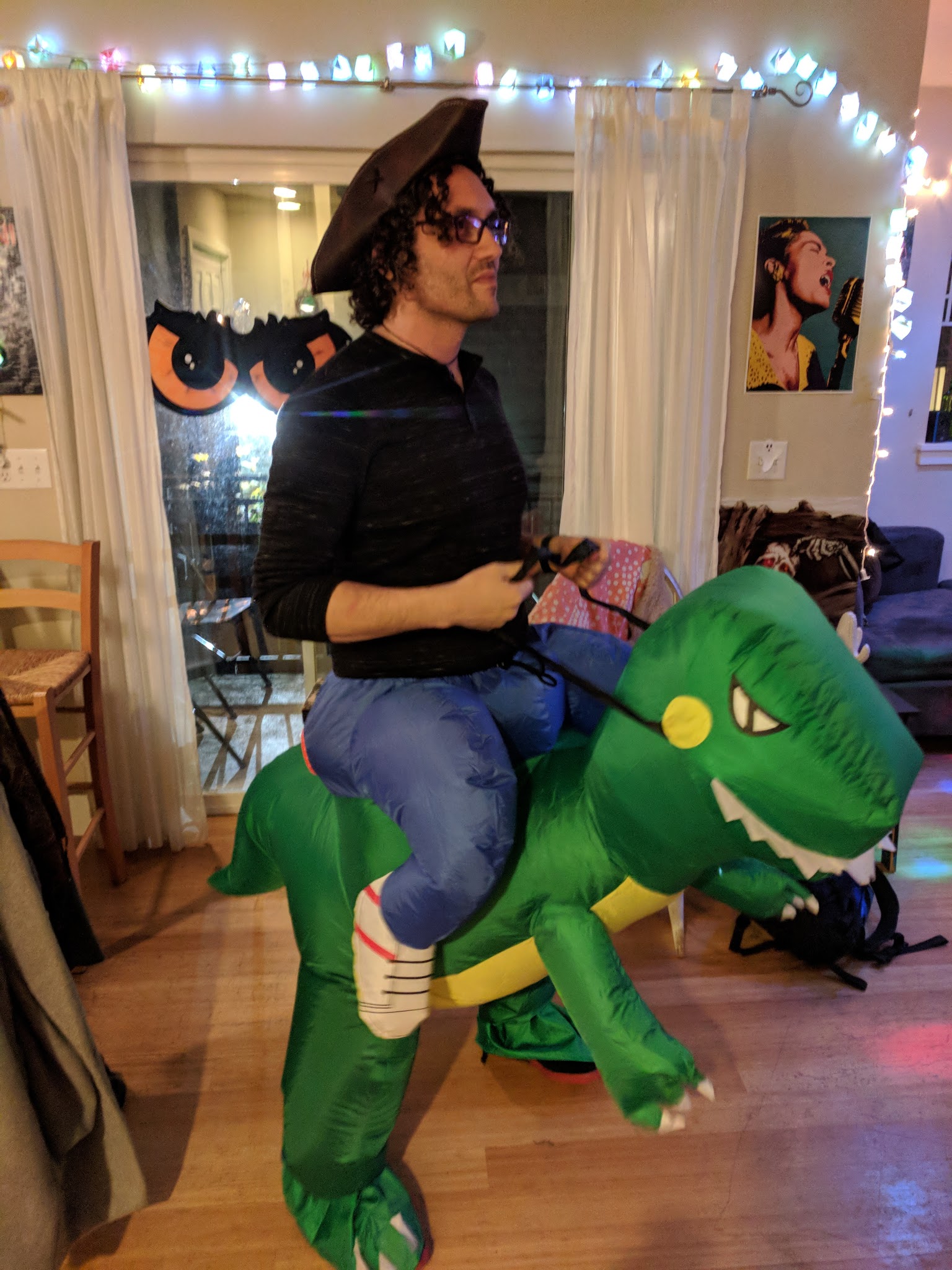 I'm so sad every time I look at that photo, because it really does look like he's in the background, even though he was indeed precariously balanced on my noggin.