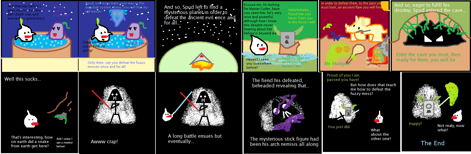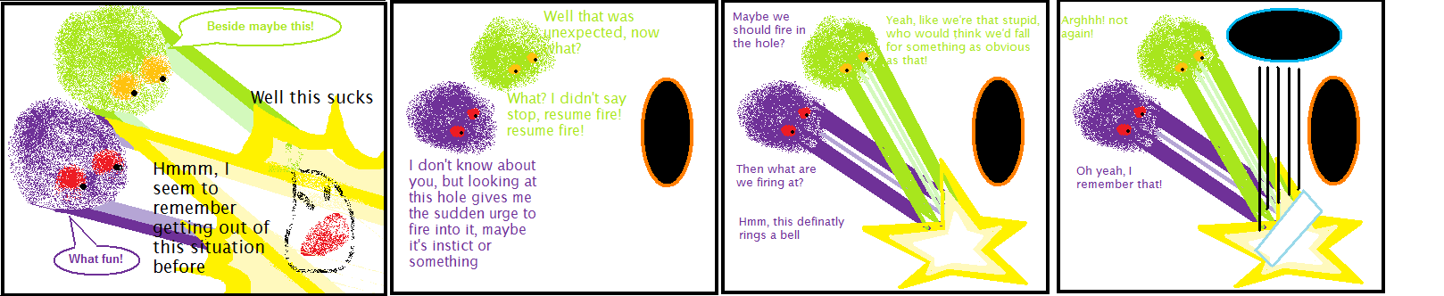 To anyone who cares I might quite this. Things have been really buisy lately and I can't find the time to contribute any comics. Also it get's a bit boring drawing The Egg over and over again. If I can think up a simpler character then I might stay. But until then don't expect anything from me.