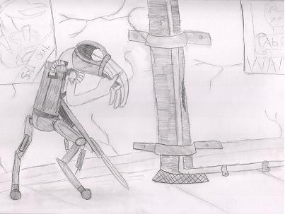 Two new sketches coming up... First lacks of perspective, but the new version of W@RF was inspiring, so I had to draw Arnie's wake-up call to Otto.