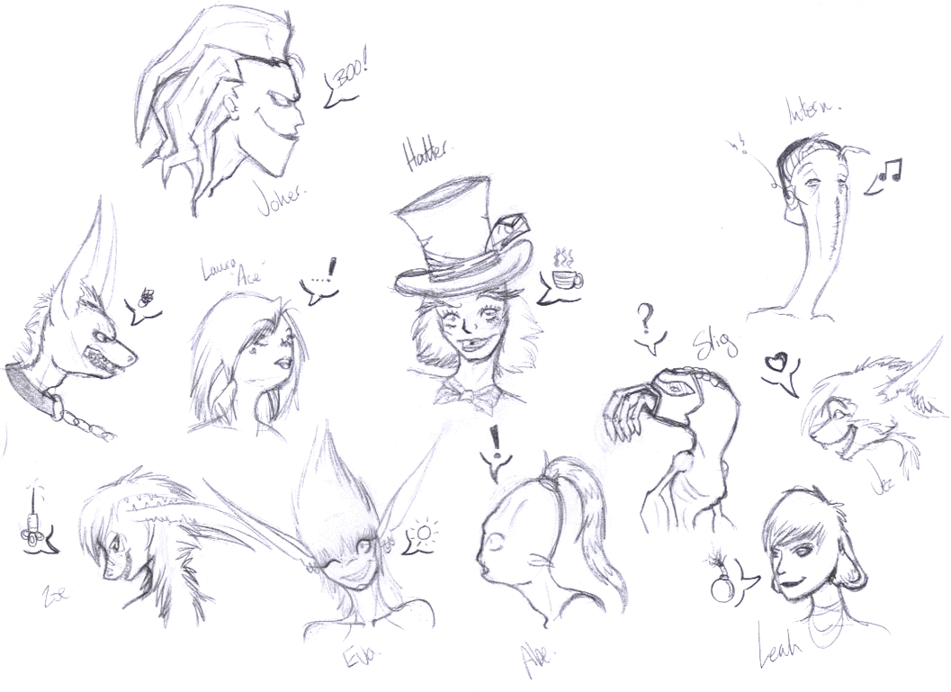 Right then, Lacy's female intern inspired me to do my own...but I did a few more than just an intern chick. There's a slig and glukkon too - strangely the glukkon reminds me of Integra from Hellsing. The sligette is...um, leaning on an invisible gun and that shapes will be a mudokon at some point ^^'