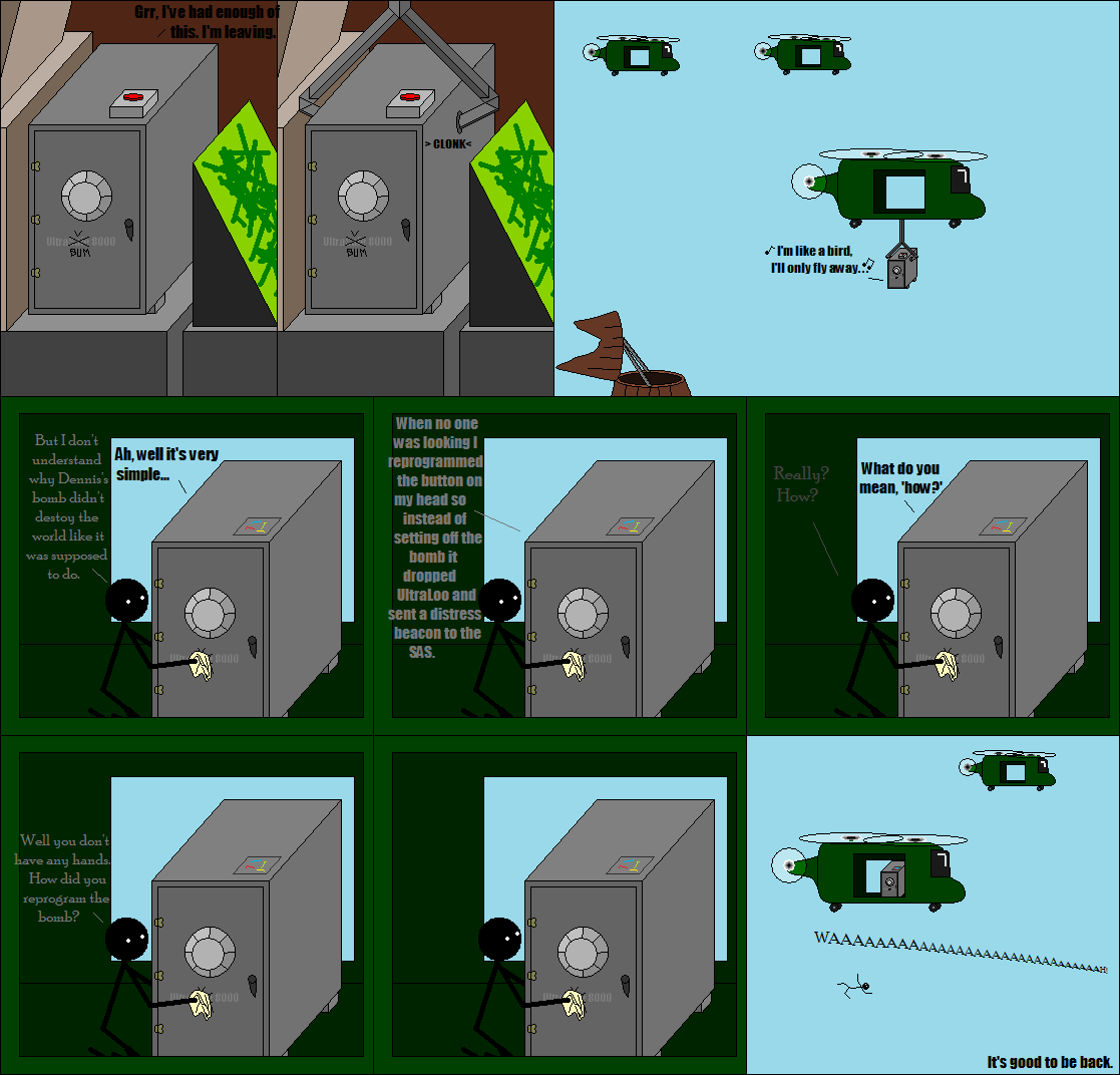 And the third was my ending. More supervillains should be defeated by dropping an outhouse on them.