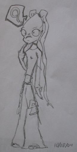 ok heres one of my drawings i did some time ago. Her name is Kirah and shes a female mudokon. I'm not really sure what shes doin in the pic. Maybe shes stretching...or doin some kind of dance...? Anyway, if you guys like it i'll post more