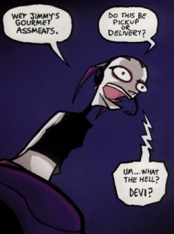 Darn you, Luke, for beating me to Devi. She's had some of the best lines in a comic I've ever read. I guess I could relate to her feeling of going crazy... and the way she feels about people sometimes. Overall, I just love her personality.
